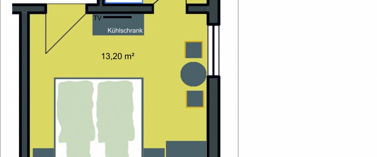 Die Kammer Vierzehn ist ein Doppelbettzimmer mit Duschbad in einer Gesamtgröße von 17,00 m².