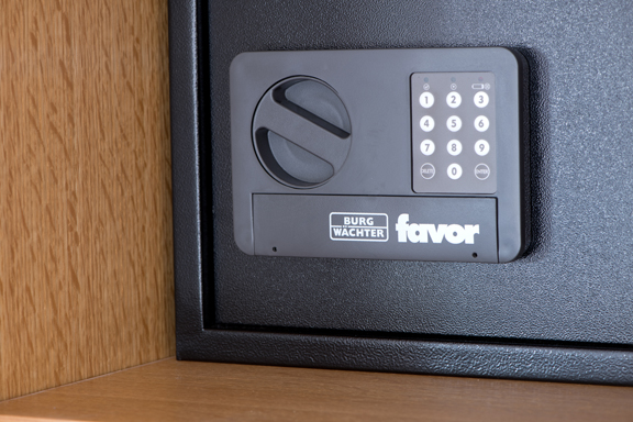 Die Kammer verfügt über ein neues "französisches" Hotel-Boxspringbett in einer Größe von 140 x 200 cm (zweiseitig an der Wand stehend) mit einer bequemen ca. 30 cm hohen Taschenfederkernmatratze inkl. Topper (Bettdecken 135 x 200 cm, Kopfkissen jeweils 80 x 80 cm sowie 40 x 40 cm), Schwanenhals-Leselampen, ein Nachtisch, Kleiderschrank, Sideboard, Hotel-TV, freies WLAN, Burg Wächter Tresor (35 x 25 x 25 cm), Tisch mit 2 Stühlen, Kofferablage, Garderode/Spiegel, Kühlschrank mit Gefrierfach (Eiswürfel, eine Flasche Mineralwasser – Medium ist kostenfrei enthalten), Dolce Gusto-Kapselmaschine von LeLonghi (4 Kapseln sind kostenfrei enthalten), Tassen, Gläser, Teller und Bestecke.